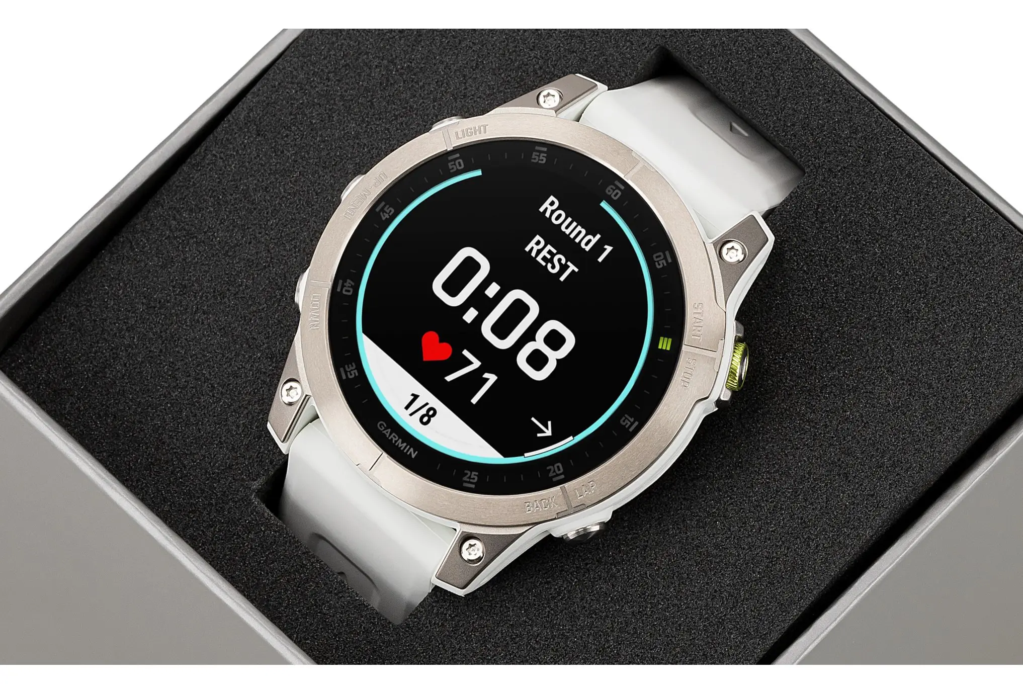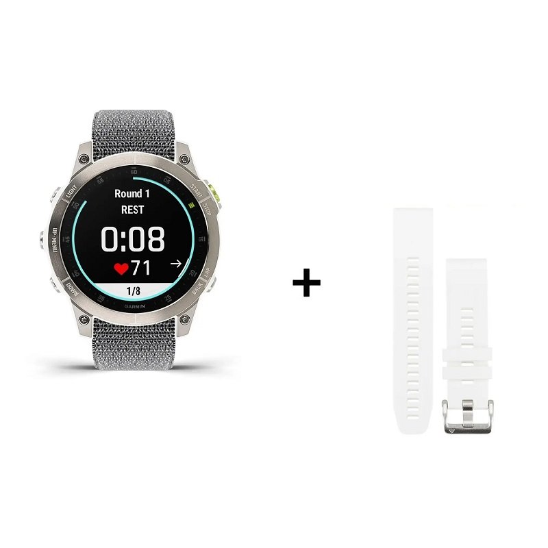 Livrée avec un bracelet silicone (ou titane selon versions), la montre assure un confort optimal, même pendant les longues séances d’entraînement. Le système QuickFit de Garmin permet de changer de bracelet en quelques secondes, sans outils. L’ensemble reste équilibré et agréable à porter, que ce soit au poignet nu ou par-dessus une manche.