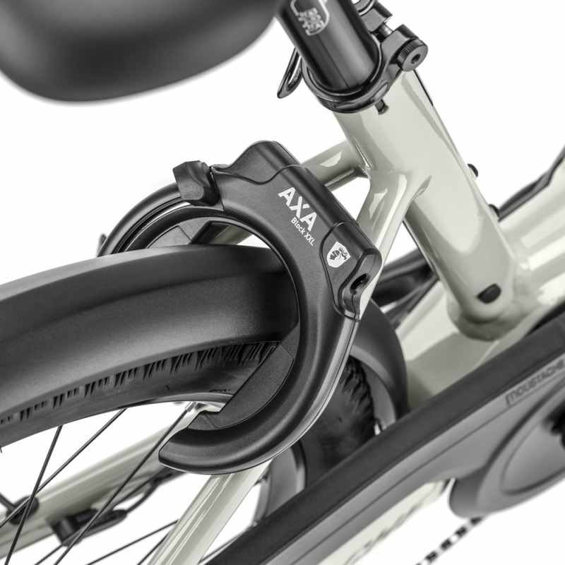 Tous les accessoires qui habillent le vélo sont utiles en ville comme en randonnée. Le porte-bagages arrière MIK HD peut recevoir un siège enfant ou des sacoches latérales Ortlieb avec fixation QL3. Les éclairages vous permettent d’évoluer sereinement sans la lumière du jour, en milieu urbain ou sur des chemins isolés. Axa annonce que son phare Nxt de 30 lux permet de voir à 50 mètres. Moustache fournit ses superbes garde-boue en aluminium, avec une béquille et un protège-plateau. Vous disposez également d’un antivol de cadre bien pratique pour les arrêts-minute.