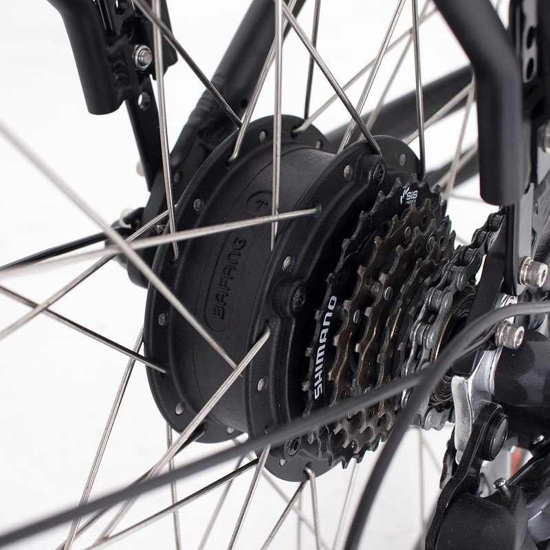 Ce vélo est équipé d’un moteur de 250 W situé dans le moyeu arrière. Ce positionnement offre une propulsion naturelle et une accélération progressive. Idéal pour les trajets urbains, il permet de franchir facilement les côtes et de circuler sans effort.