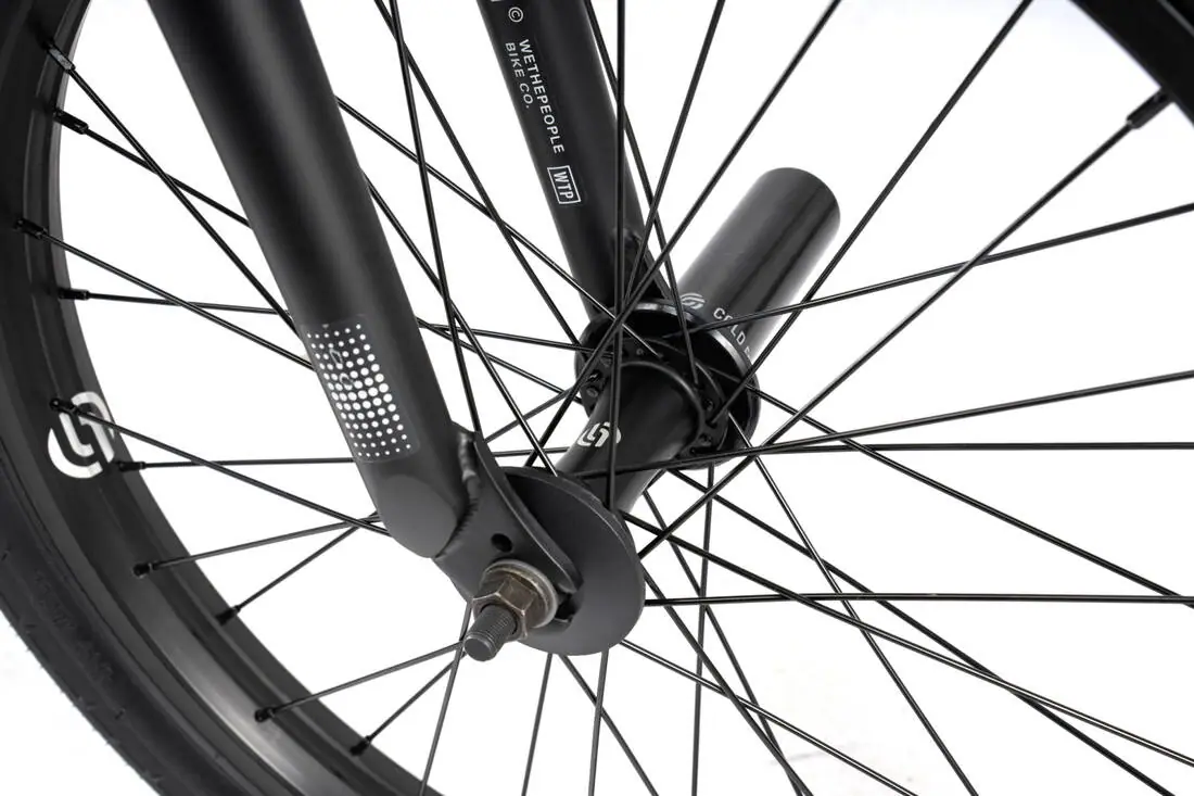 Au niveau des roues, ce BMX est équipé de jantes en aluminium Salt « Valon » à l’avant, simple paroi, 36 trous, et d’une jante double paroi Saltplus « Summit » à l’arrière, également 36 trous. Le pneu « Activate » wethepeople, large à 2,35 pouces, équipe à la fois la roue avant et arrière, offrant une traction optimale sur divers terrains.