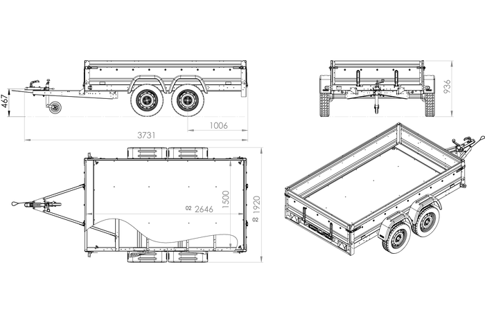 Une remorque à deux essieux reste beaucoup plus stable, même lorsqu’elle n’est pas chargée uniformément.