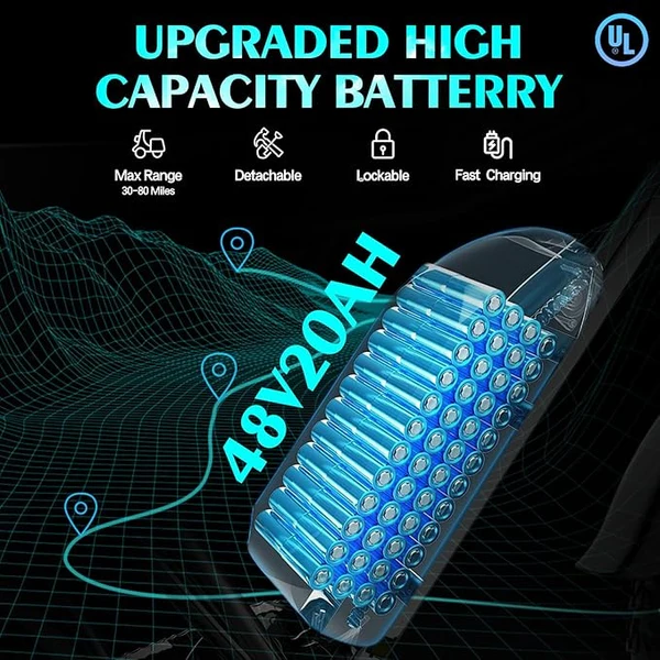 2. Autonomie longue durée : batterie 48V 20AH offrant jusqu’à 100 km